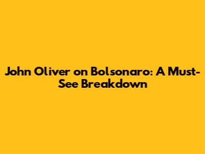 John Oliver On Bolsonaro: A Must-See Breakdown