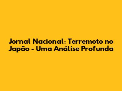 Jornal Nacional: Terremoto No Japão - Últimas Notícias E Impactos