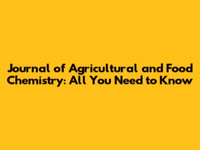 Journal Of Agricultural And Food Chemistry: All You Need To Know