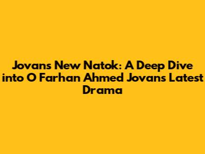 Hey guys! Are you ready for some exciting news? We're diving deep into the world of Bengali drama, and today's spotlight is shining brightly on the talented O Farhan Ahmed Jovan. Specifically, we're going to take a look at his new natok, or drama, that's creating quite a buzz. If you're a fan of Jovan, or just a lover of compelling storytelling, you're in for a treat! This article is your go-to guide for everything you need to know about Jovan's latest project. We'll be exploring the storyline, the cast, the production details, and what makes this natok so special. Get ready to be informed and entertained as we unpack the magic that Jovan brings to the screen.