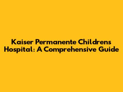 Kaiser Permanente Children's Hospital: A Comprehensive Guide