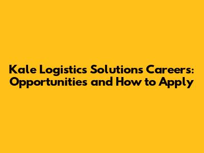 Are you looking for exciting career opportunities in the logistics and technology sector? Kale Logistics Solutions might just be the place for you! In this article, we will explore Kale Logistics Solutions careers, the types of roles they offer, how to apply, and what makes them a great place to work. So, if you're ready to take your career to the next level, keep reading!