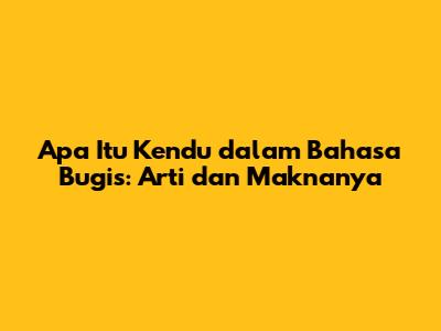 Bahasa Bugis, kaya akan kearifan lokal dan budaya yang mendalam, menyimpan berbagai istilah unik yang mungkin belum banyak dikenal oleh masyarakat luas. Salah satu istilah tersebut adalah 'kendu'*. Mungkin sebagian dari kita baru pertama kali mendengar kata ini. Nah, dalam artikel ini, kita akan membahas secara mendalam apa itu kendu' dalam bahasa Bugis, makna filosofisnya, serta bagaimana istilah ini digunakan dalam kehidupan sehari-hari masyarakat Bugis. Jadi, buat kalian yang penasaran atau ingin lebih mengenal budaya Bugis, yuk simak penjelasan berikut ini!