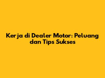 Kerja di dealer motor menawarkan berbagai peluang karir yang menarik dan menjanjikan bagi mereka yang memiliki minat di dunia otomotif. Dengan berbagai posisi yang tersedia, kualifikasi yang dibutuhkan, dan tips untuk sukses, kamu bisa mempersiapkan diri untuk meraih karir yang sukses di dealer motor. Jangan ragu untuk mencari informasi lebih lanjut, mengikuti pelatihan, dan membangun jaringan di industri otomotif. Siapa tahu, karir impian kamu ada di dealer motor! Semoga artikel ini bermanfaat dan memberikan inspirasi bagi kalian semua. Semangat terus dan sukses selalu!
