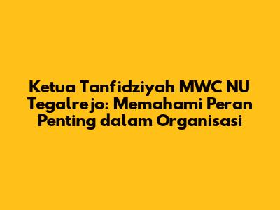 Memahami peran seorang Ketua Tanfidziyah MWC NU Tegalrejo dimulai dari pengenalan struktur organisasi NU. MWC NU merupakan struktur organisasi NU di tingkat kecamatan, yang berada di bawah naungan Pengurus Cabang (PC) NU kabupaten/kota. Tanfidziyah adalah struktur eksekutif dalam organisasi NU, yang bertugas melaksanakan kebijakan-kebijakan yang telah ditetapkan oleh Syuriyah, yaitu struktur yang berwenang dalam hal pengambilan keputusan dan penetapan kebijakan organisasi. Dengan demikian, Ketua Tanfidziyah adalah pemimpin tertinggi dalam menjalankan roda organisasi NU di tingkat kecamatan.
