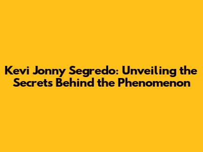 Kevi Jonny Segredo: Unveiling The Secrets Behind The Phenomenon