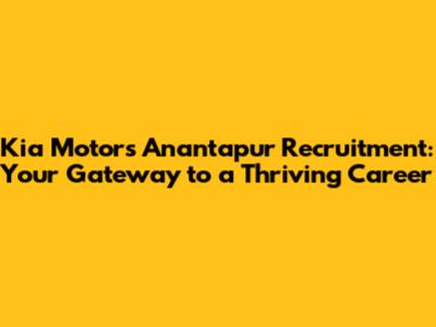 Kia Motors Anantapur: Job Opportunities & Recruitment