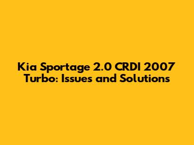 Kia Sportage 2.0 CRDI 2007 Turbo: Issues And Solutions