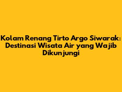 Kolam Renang Tirto Argo Siwarak adalah pilihan yang tepat buat kalian yang lagi cari tempat liburan seru dan menyenangkan. Dengan fasilitas yang lengkap, air yang jernih dan segar, serta suasana yang tenang dan damai, kolam renang ini menawarkan pengalaman liburan yang tak terlupakan. Harga tiket masuknya yang terjangkau dan lokasinya yang mudah dijangkau juga menjadi nilai tambah. Jadi, tunggu apa lagi? Ajak keluarga atau teman-teman kalian untuk berlibur ke Kolam Renang Tirto Argo Siwarak sekarang juga! Dijamin, kalian akan merasa puas dan ingin kembali lagi.