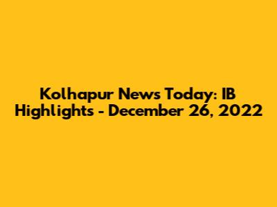 Kolhapur News Today: IB Highlights - December 26, 2022