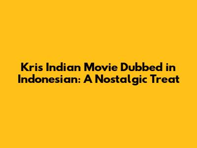 Kris Indian Movie Dubbed In Indonesian: A Nostalgic Treat