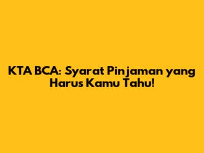 Bagi sebagian orang, Kredit Tanpa Agunan (KTA) BCA bisa jadi solusi tepat untuk memenuhi berbagai kebutuhan finansial. Entah itu untuk modal usaha, biaya pendidikan, renovasi rumah, atau bahkan liburan impian, KTA BCA menawarkan kemudahan pinjaman tanpa perlu menjaminkan aset berharga. Tapi, sebelum kamu mengajukan pinjaman KTA BCA, penting banget untuk memahami syarat-syarat yang berlaku. Yuk, kita bahas tuntas supaya pengajuanmu berjalan lancar dan disetujui!