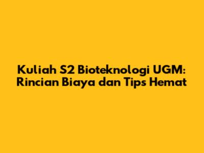 Hai, guys! Kalau kamu lagi kepikiran buat lanjut S2 dan tertarik banget sama dunia bioteknologi, pasti salah satu hal yang bikin penasaran adalah biaya kuliah S2 Bioteknologi UGM. Nah, artikel ini bakal ngebahas tuntas soal biaya kuliahnya, mulai dari biaya pendaftaran, biaya pendidikan, sampai biaya hidup di Jogja yang nggak kalah penting buat kamu pertimbangkan. Selain itu, kita juga bakal bahas tips-tips hemat supaya kamu bisa kuliah dengan lebih tenang tanpa harus pusing mikirin masalah keuangan.