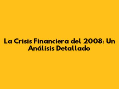 La Crisis Financiera Del 2008: Causas, Consecuencias Y Lecciones