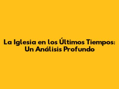 La Iglesia En Los Últimos Tiempos: Un Análisis Profundo