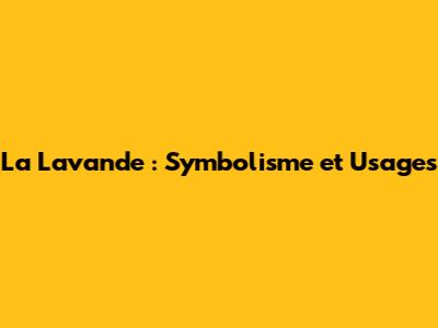 La Lavande : Symbolisme Et Usages