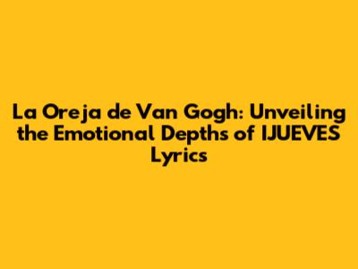 Hey music lovers! Ever found yourselves completely captivated by a song? For many, that song is "IJUEVES" by La Oreja de Van Gogh. This track isn't just a catchy tune; it's a journey into raw emotions, a story told through the beautiful lyrics and the band's signature sound. So, let's dive deep into the heart of "IJUEVES", exploring the lyrics and what makes this song so special. We'll break down the meaning, the context, and why it continues to resonate with so many people, like you and me.