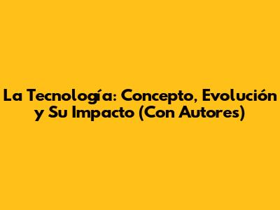 La Tecnología: Concepto, Evolución Y Su Impacto (Con Autores)