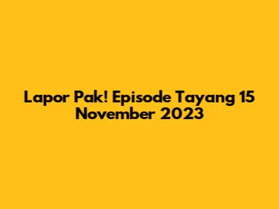 Lapor Pak! Episode Tayang 15 November 2023