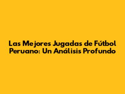 Las Mejores Jugadas De Fútbol Peruano: Un Análisis Profundo
