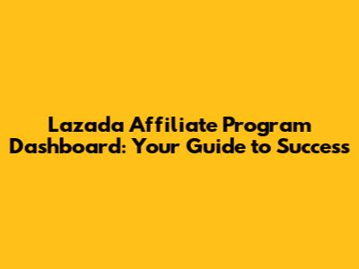 Lazada Affiliate Program Dashboard: Your Guide To Success