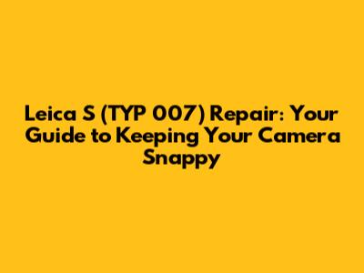Leica S (TYP 007) Repair: Fixes, Tips & More!