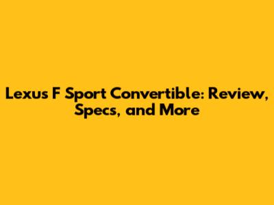 Lexus F Sport Convertible: Review, Specs, And More