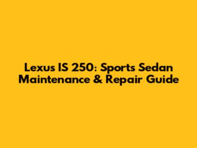 Lexus IS 250: Sports Sedan Maintenance & Repair Guide
