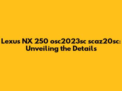 Hey guys! Today, let's dive deep into the Lexus NX 250, specifically focusing on what the "osc2023sc scaz20sc" might signify. This alphanumeric string likely points to specific configurations, packages, or perhaps even internal codes related to the vehicle. So, buckle up as we explore the nuances of the Lexus NX 250 and try to decode this mysterious identifier. The Lexus NX 250 is a fantastic entry-level luxury SUV that offers a blend of style, comfort, and technology. It's designed to appeal to those who want a taste of luxury without breaking the bank. Now, let's get into the specifics. From a broader perspective, the Lexus NX series has always been about providing a sophisticated driving experience. It’s not just about getting from point A to point B; it’s about enjoying the journey. The NX 250 embodies this philosophy with its refined engine, comfortable interior, and a host of tech features that make driving a pleasure. Whether you're commuting to work or heading out on a weekend adventure, the NX 250 aims to make every drive memorable.