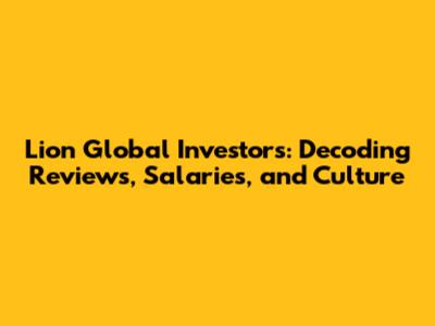 Lion Global Investors: Reviews, Salaries & Culture