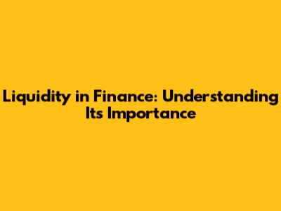 Liquidity In Finance: Understanding Its Importance