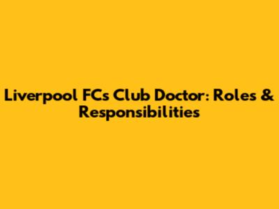 Liverpool FC's Club Doctor: Roles & Responsibilities