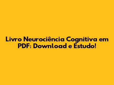 Livro Neurociência Cognitiva Em PDF: Download E Estudo!