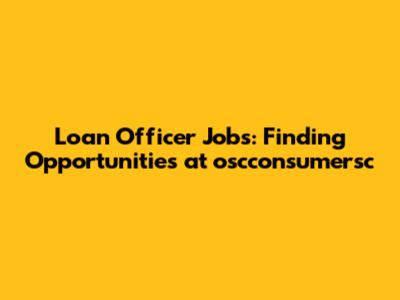 Loan Officer Jobs: Oscconsumersc Careers