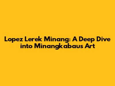 Hey guys! Ever heard of Lopez Lerek Minang? If not, buckle up because we’re about to dive deep into the mesmerizing world of Minangkabau art! This isn't just some random cultural stuff; it's a vibrant, historical, and utterly captivating art form that deserves all the spotlight. In this article, we'll explore what makes Lopez Lerek Minang so special, its history, significance, and why it continues to be a vital part of Minangkabau culture. Trust me, by the end, you'll be just as fascinated as I am!