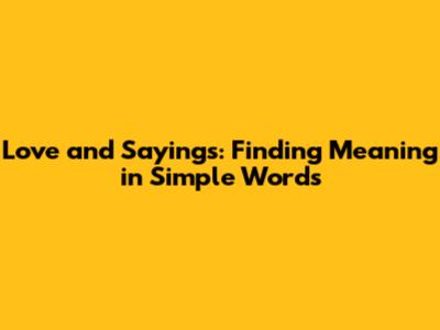 Love And Sayings: Finding Meaning In Simple Words