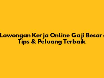 Lowongan Kerja Online Gaji Besar: Tips & Peluang Terbaik