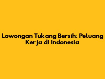 Lowongan Tukang Bersih: Peluang Kerja Di Indonesia