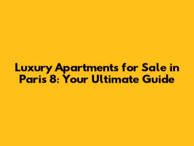 Hey there, real estate enthusiasts! If you're dreaming of owning a slice of Parisian paradise, specifically in the glamorous 8th arrondissement, then you've come to the right place. This comprehensive guide will walk you through everything you need to know about luxury apartments for sale in Paris 8. We'll delve into the allure of this prestigious area, explore the types of properties available, discuss the investment potential, and offer tips to make your property search a breeze. So, buckle up, grab a croissant (or two!), and let's embark on this exciting journey together!