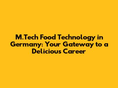 M.Tech Food Tech In Germany: Your Guide