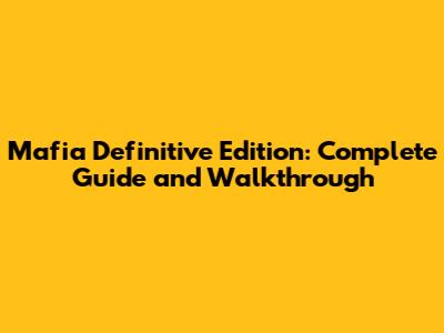 Mafia Definitive Edition: Complete Guide And Walkthrough