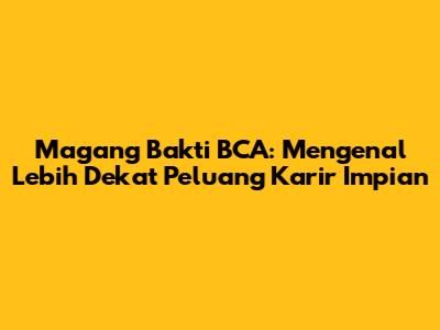 Hai, guys! Kalian yang lagi cari pengalaman kerja dan pengen banget gabung di dunia perbankan, pasti udah gak asing lagi kan sama yang namanya Magang Bakti BCA? Nah, buat kalian yang masih penasaran, mari kita bedah tuntas tentang Magang Bakti BCA, mulai dari apa itu, syaratnya apa aja, sampai gimana sih rasanya jadi anak magang di salah satu bank terbesar di Indonesia ini. Penasaran kan? Yuk, kita mulai!