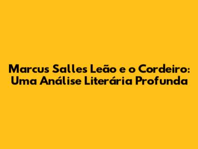 Marcus Salles Leão E O Cordeiro: Uma Análise Literária Profunda