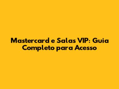 Mastercard E Salas VIP: Guia Completo Para Acesso