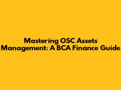 Mastering OSC Assets Management: A BCA Finance Guide