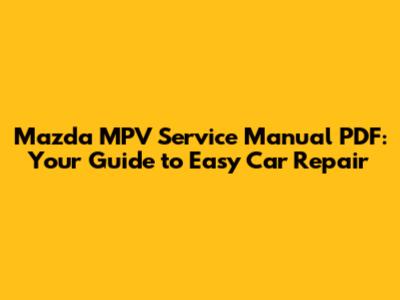 Mazda MPV Service Manual PDF: Your Guide To Easy Car Repair