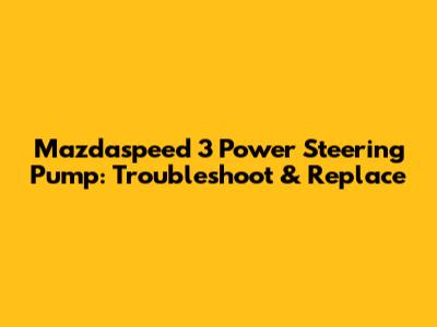 Mazdaspeed 3 Power Steering Pump: Troubleshoot & Replace