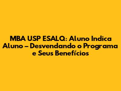 Olá, pessoal! Se você está de olho em fazer um MBA na USP ESALQ, provavelmente já ouviu falar do programa “Aluno Indica Aluno”. É aquele empurrãozinho que a galera que já está lá dentro dá pra te ajudar a entrar. Mas, como funciona essa parada? Quais as vantagens? E como você pode se beneficiar disso? Neste artigo, vamos mergulhar fundo no programa Aluno Indica Aluno do MBA USP ESALQ, desvendando todos os detalhes para você tomar a melhor decisão e turbinar sua carreira. Afinal, quem não quer uma forcinha de quem já está no caminho, né?