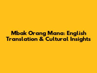 Mbak Orang Mana: English Translation & Cultural Insights