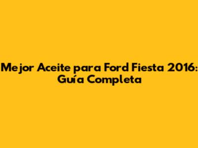 Mejor Aceite Para Ford Fiesta 2016: Guía Completa